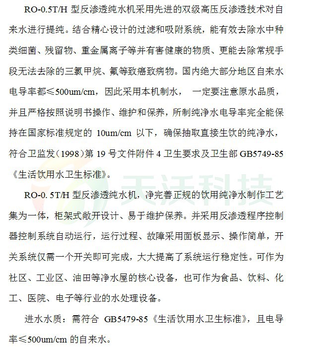 食品用水: 飲用純凈水、礦泉水、釀酒、飲料等行業(yè)