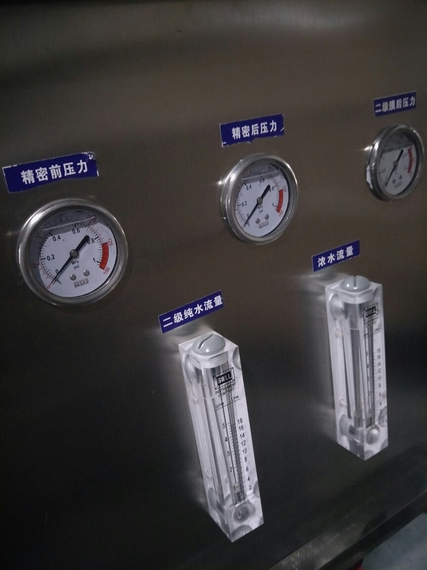 反滲透系統是整個純凈水系統的核心部件,只有通過反滲透才能達到純凈水的標準。反滲透系統主要采用膜過濾工藝。然后水分子可以通過反滲透膜。其他一些如鈣、鎂、鈉等離子隨廢水一起排掉。下面本系統的組成部件。