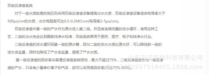 反滲透是一項高新膜分離技術(shù),其孔徑很小,大都≤10×10 10(10A),它能去除濾液中的離子范圍和分子量很小的有機(jī)物,如細(xì)菌、病毒、熱源等。它已廣泛用于海水或苦咸水淡化、電子、醫(yī)藥用純水、飲用蒸餾水、太空水的生產(chǎn),還應(yīng)用于生物、醫(yī)學(xué)工程。