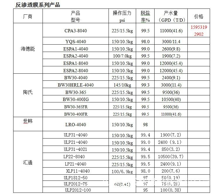 反滲透ro膜系列