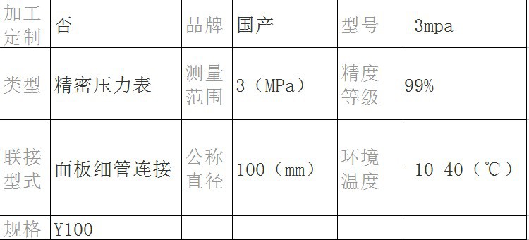 山東天沃壓力表y100專業供應 一站式采購超市 水處理設備配件